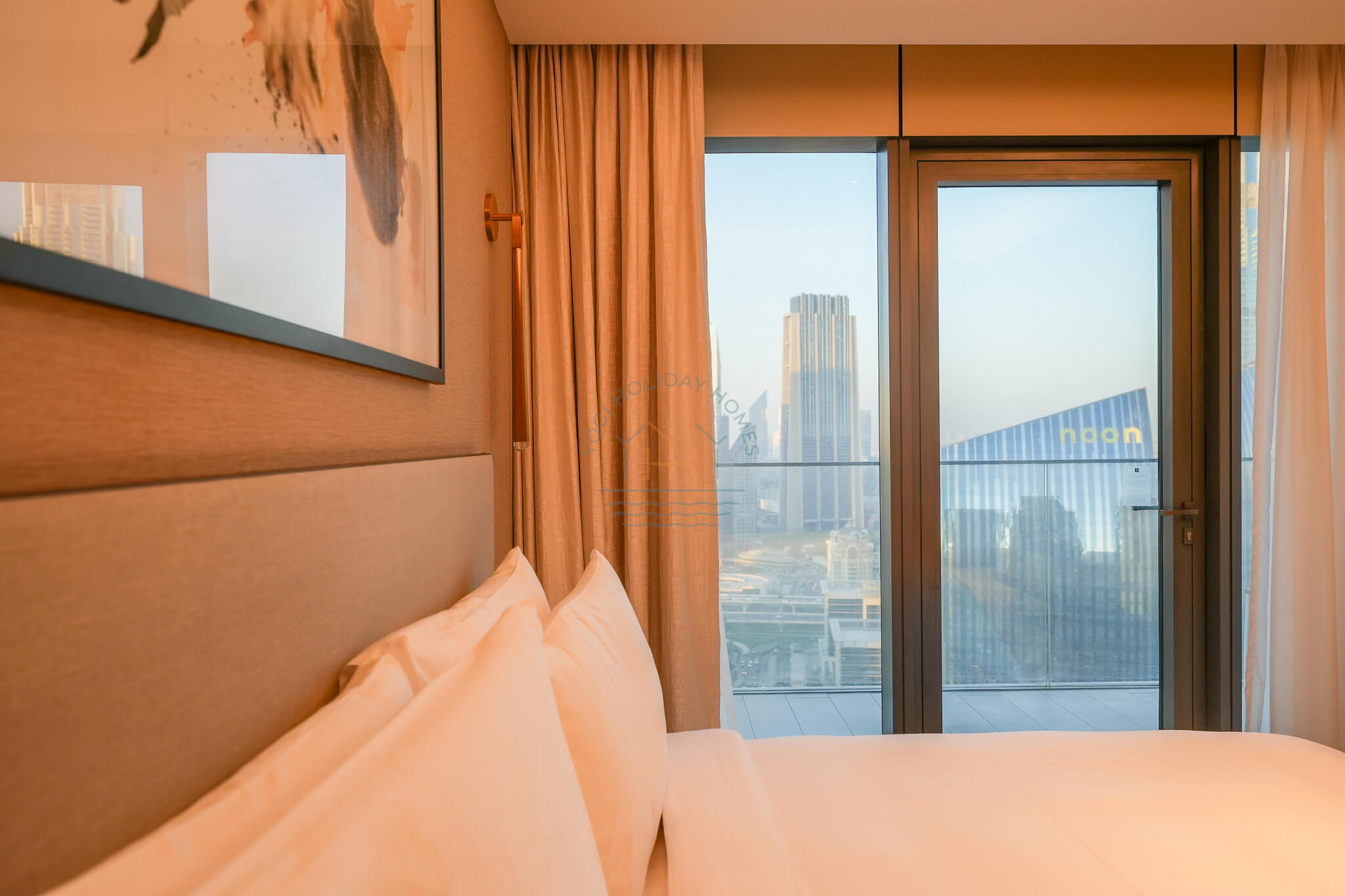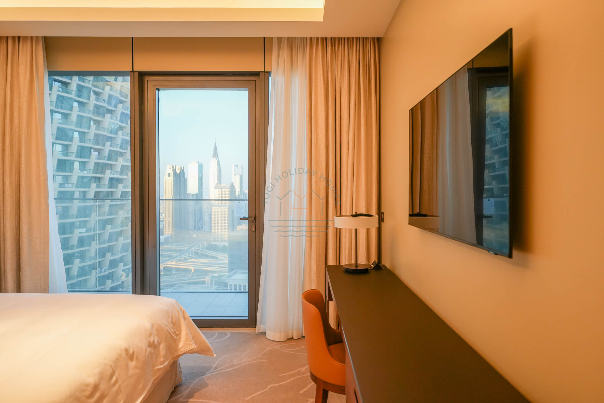 - Master Bedroom: Enjoy ultimate comfort in the master bedroom, which includes a king-size bed, a spacious wardrobe, and direct access to the balcony with breathtaking views of the Burj Khalifa. The room is designed for relaxation, featuring premium linens and plush pillows.