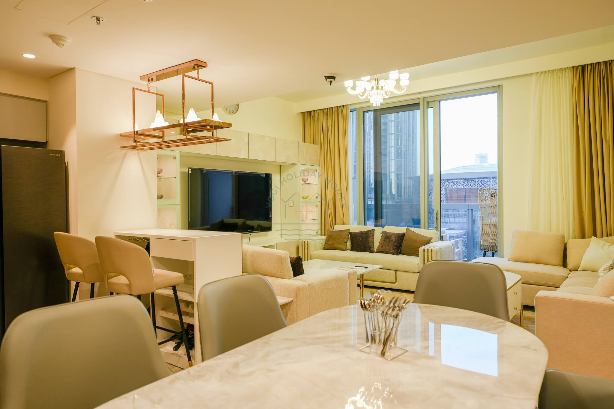 Experience the vibrant energy of Downtown Dubai in our luxurious two-bedroom apartment at Forte Tower 1. With stunning downtown views and space for up to 5 guests, this modern retreat blends elegance, comfort, and convenience in the heart of the city.